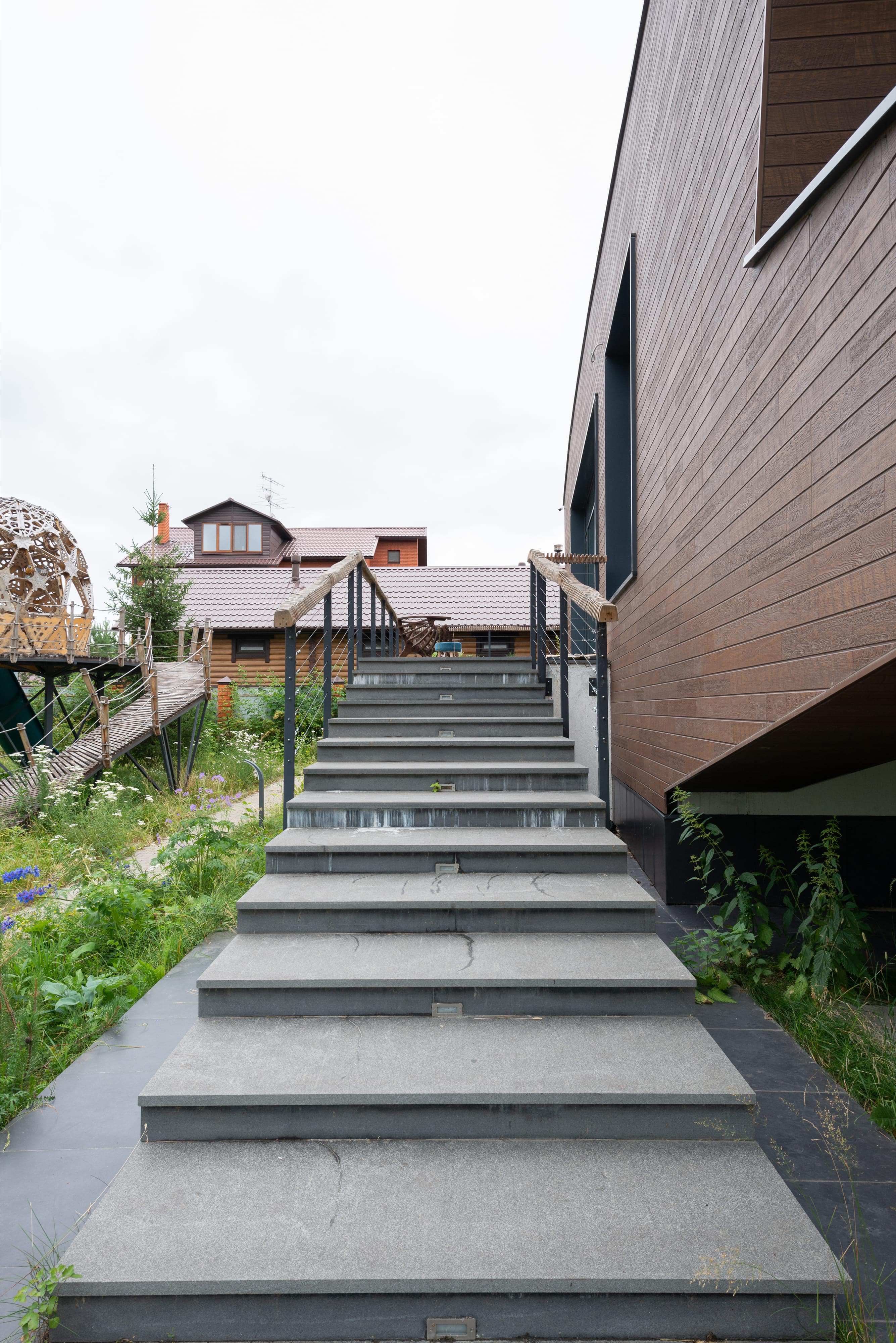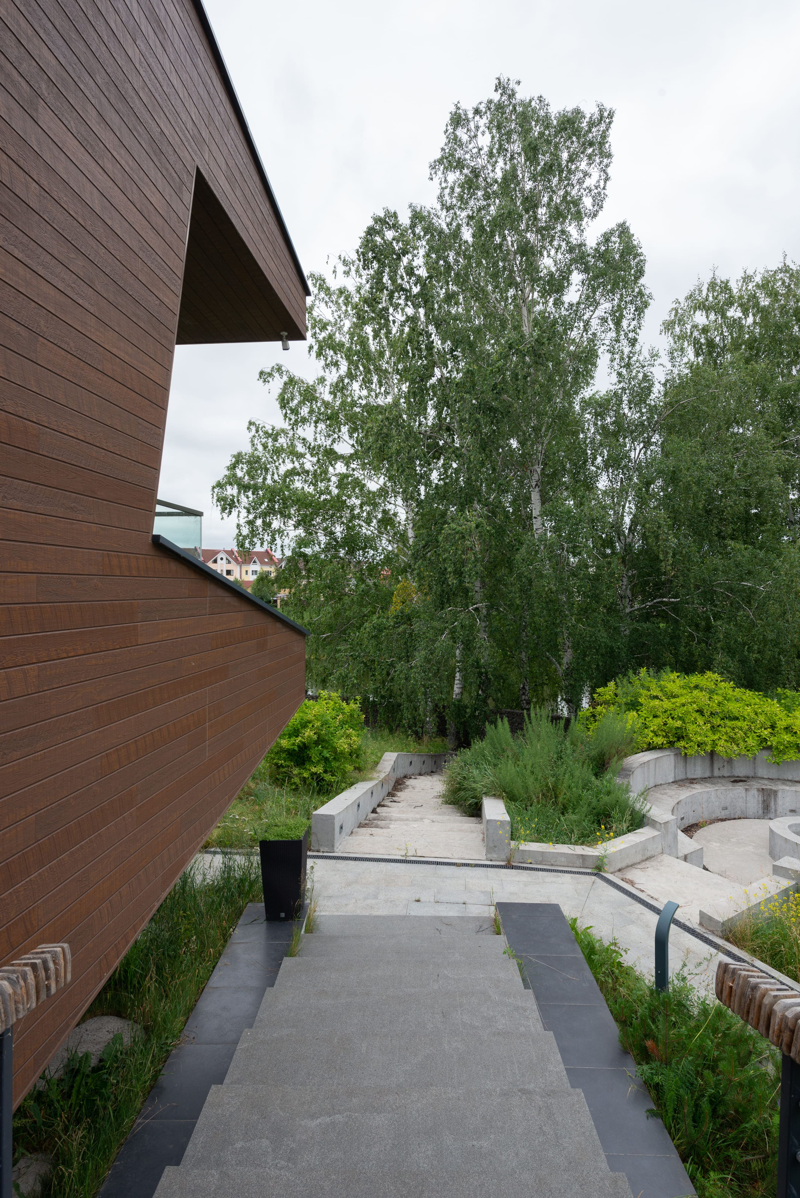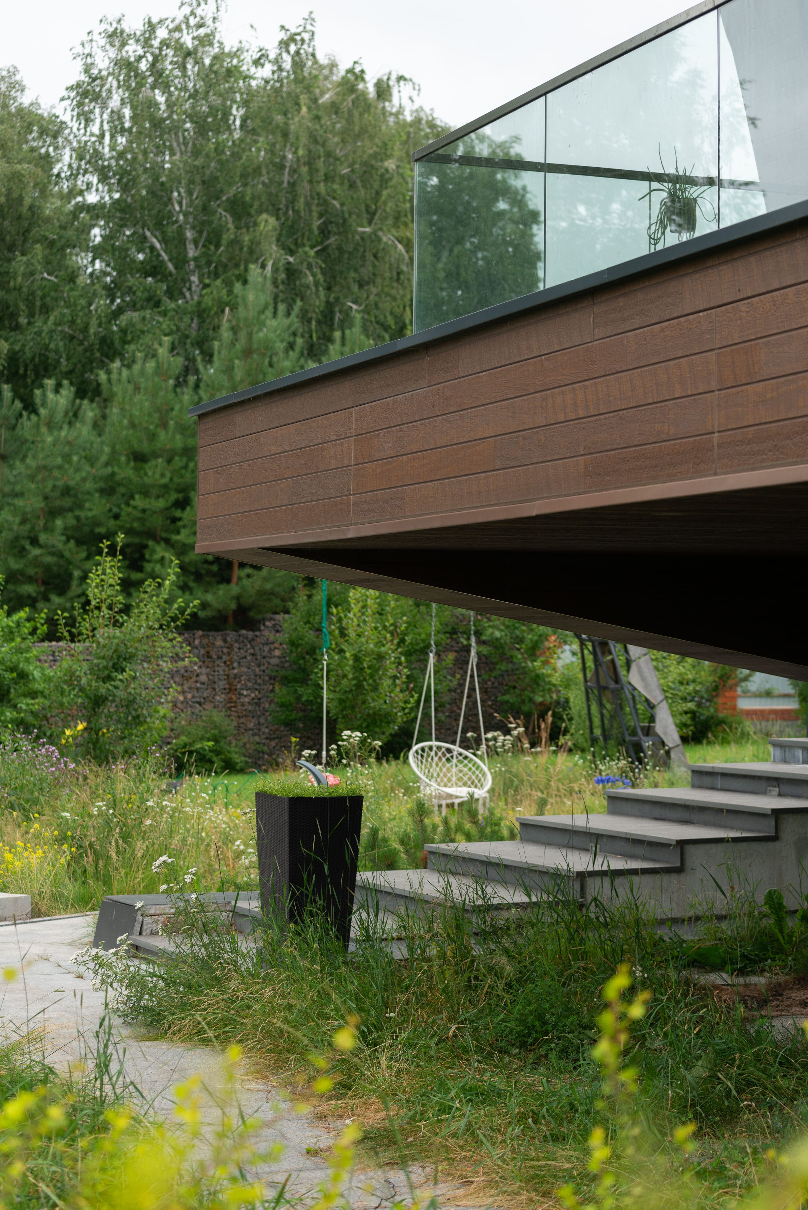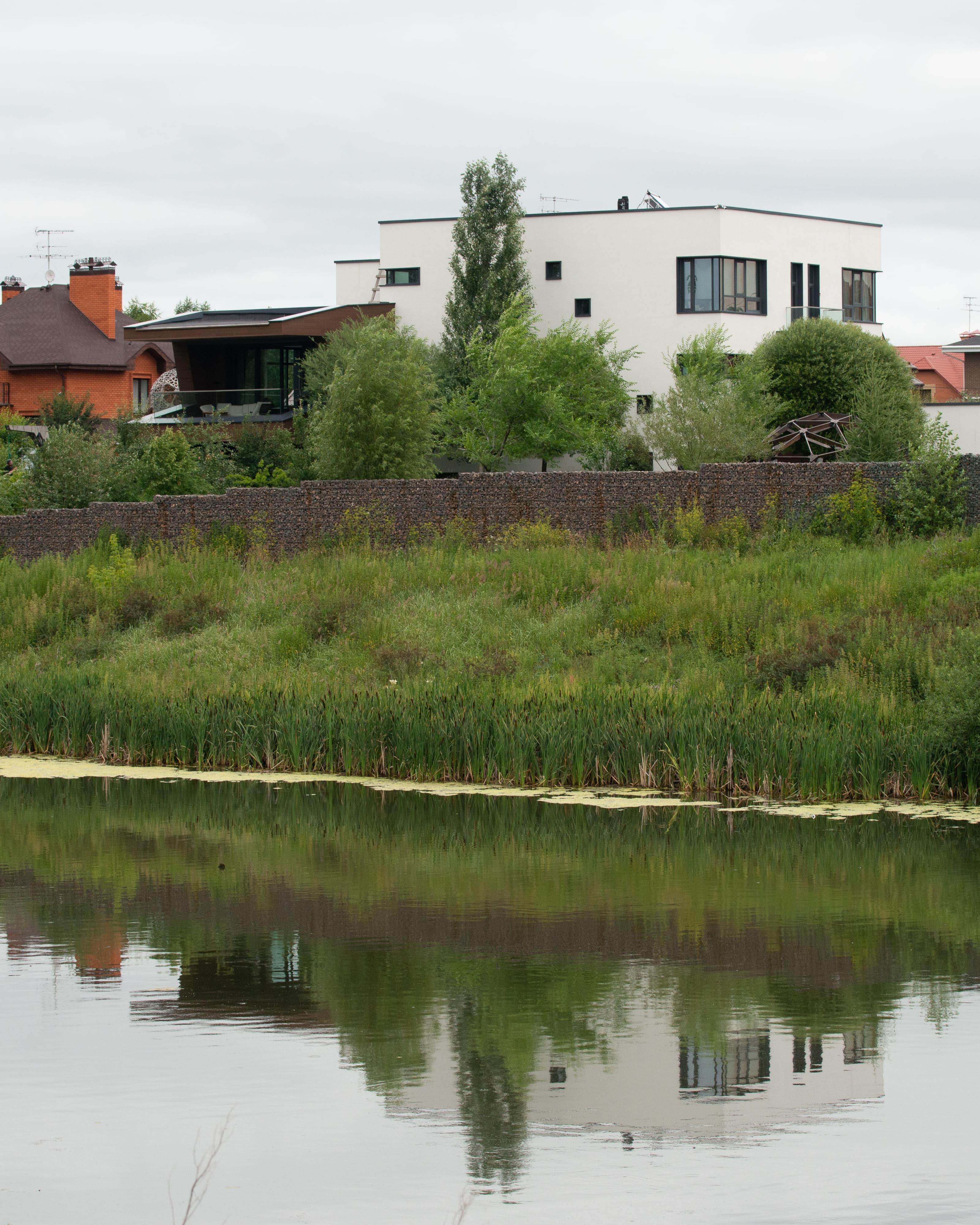 - в качестве решений по забору - выполнены габионы,