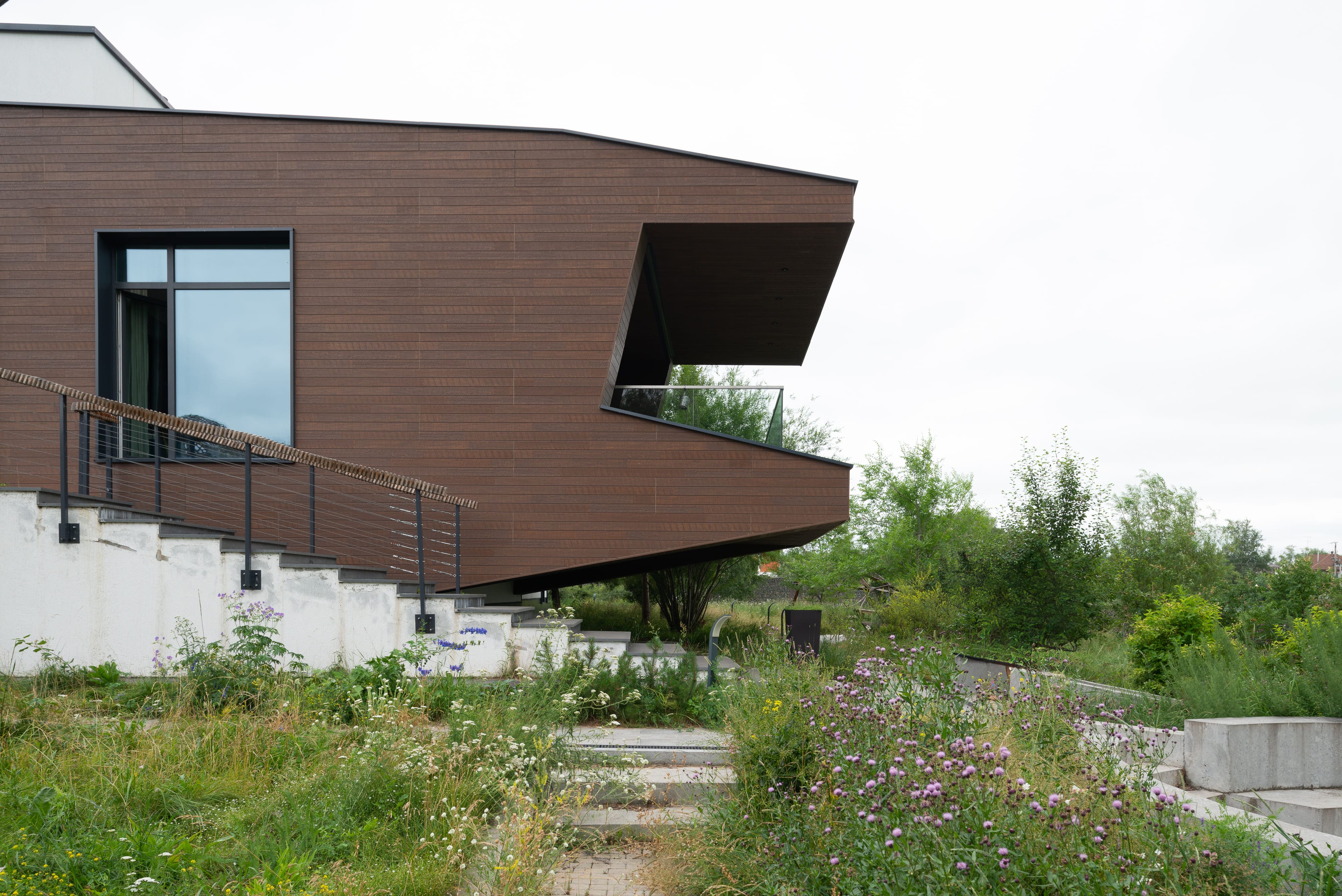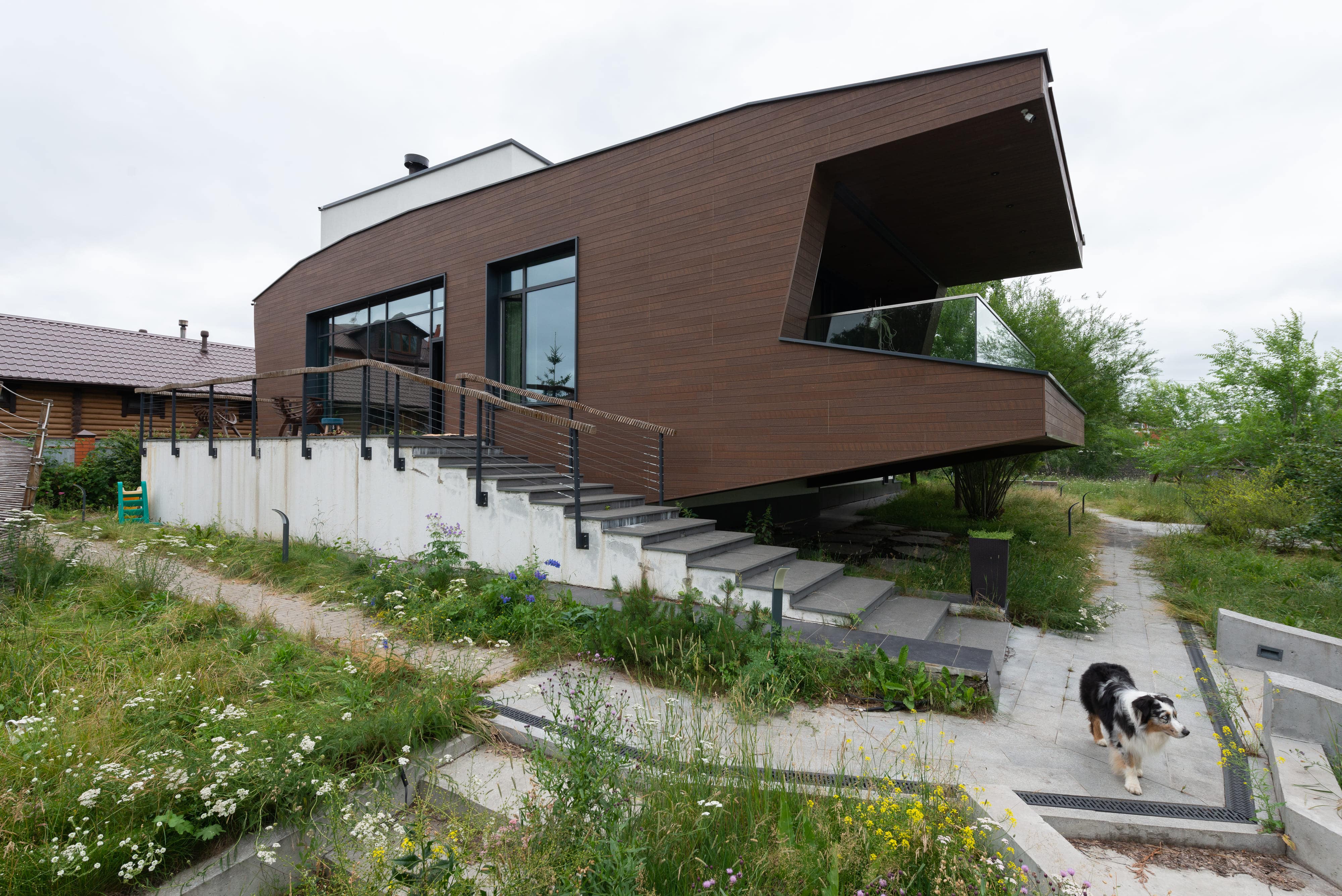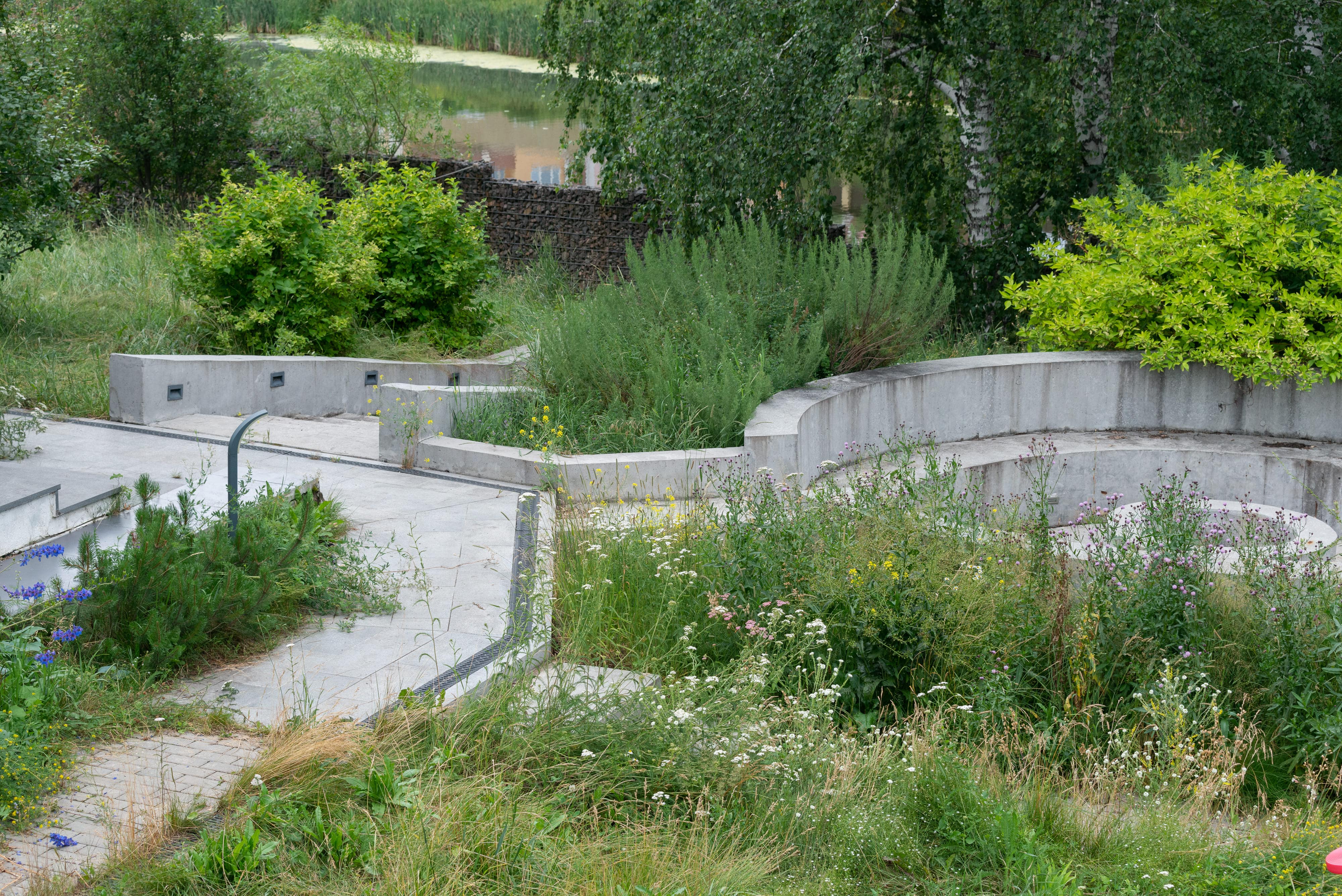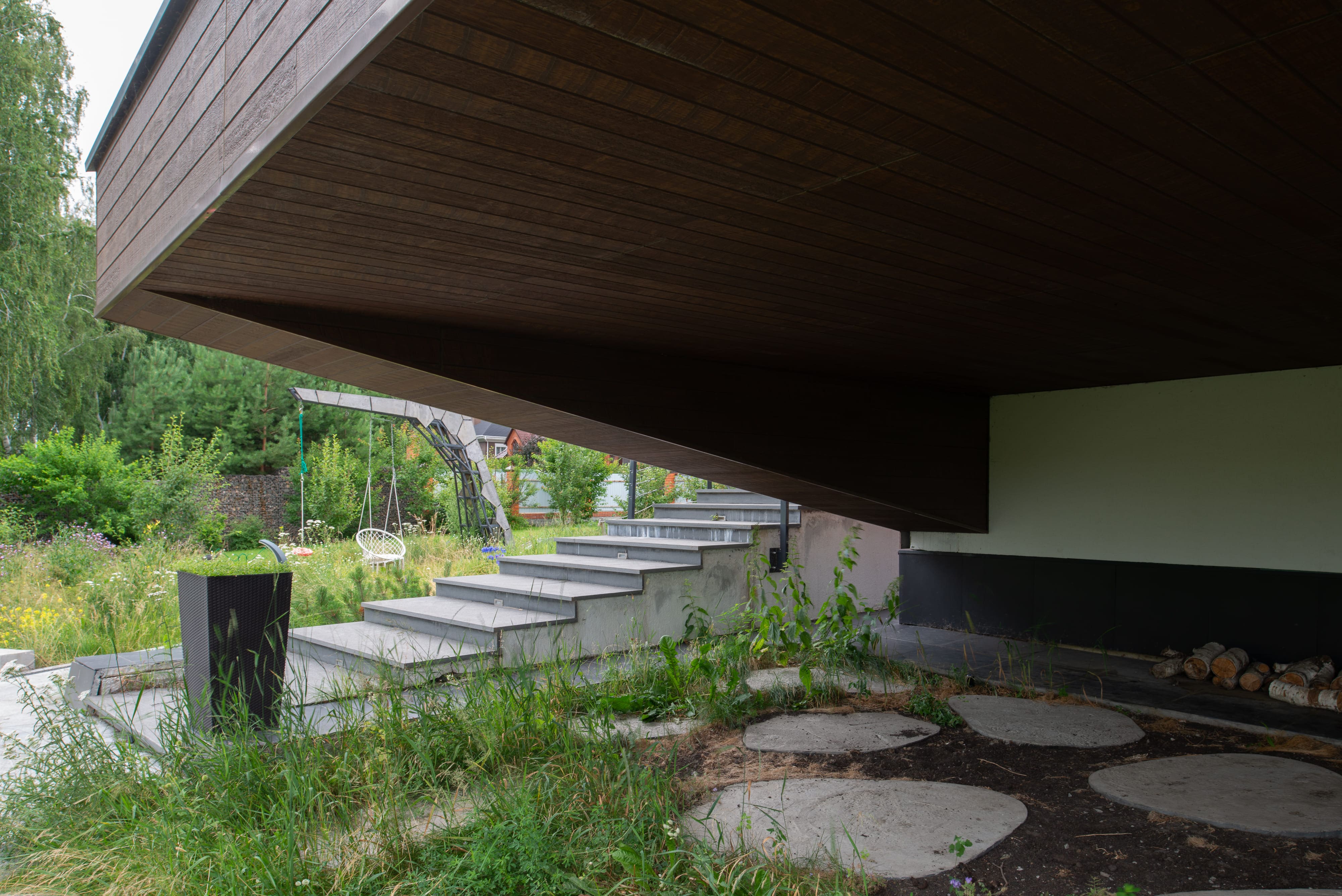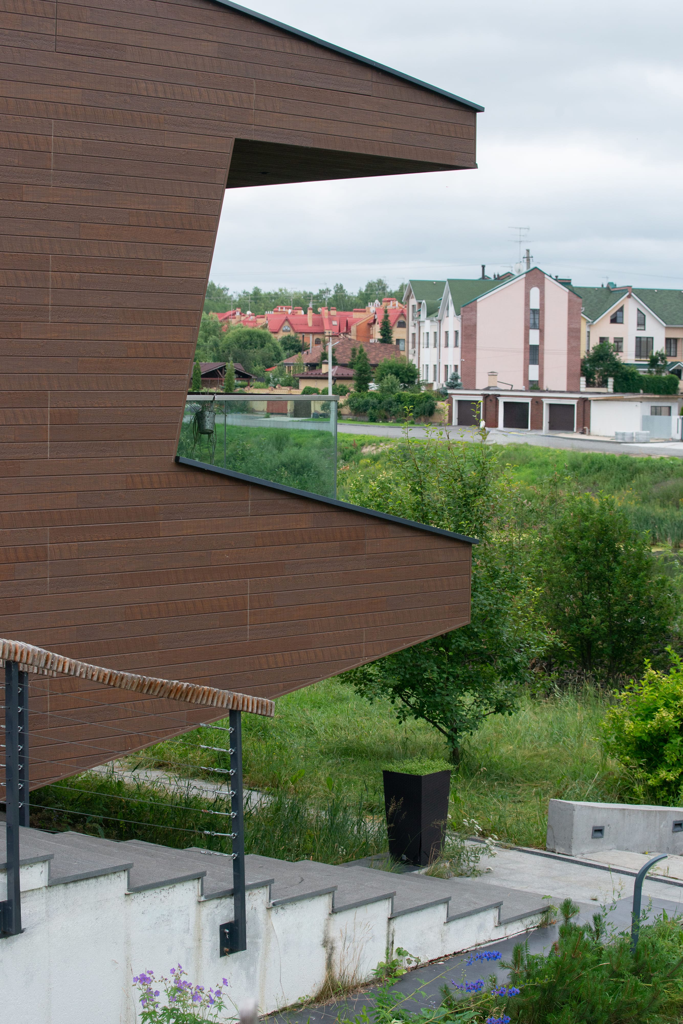 - в качестве решений по забору - выполнены габионы,
