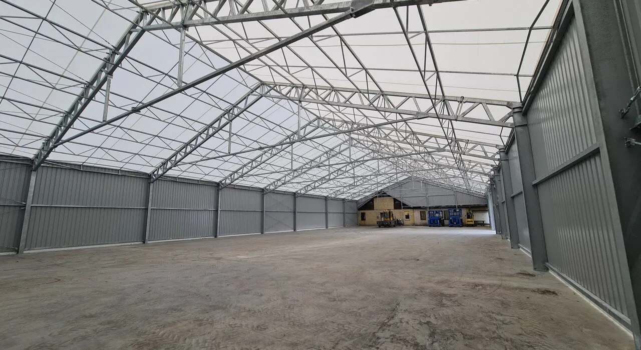 Описание металлического ангара из сэндвич-панелей площадью 350 кв. м.