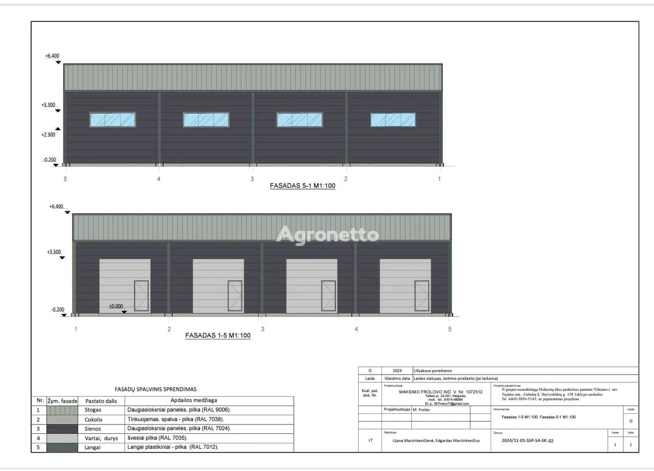 Металлический ангар площадью 720 кв. м имеет следующие характеристики: